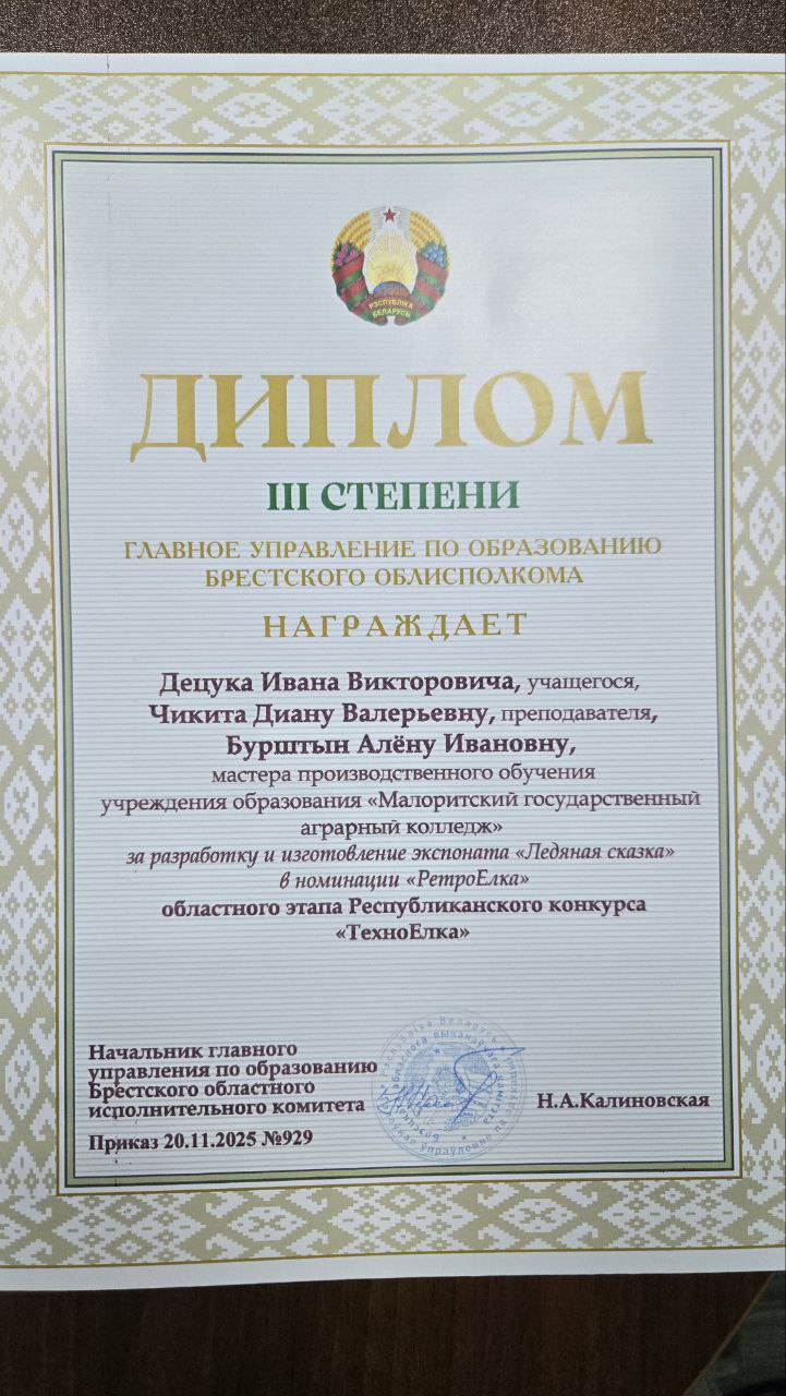 "Малоритский государственный аграрный колледж"