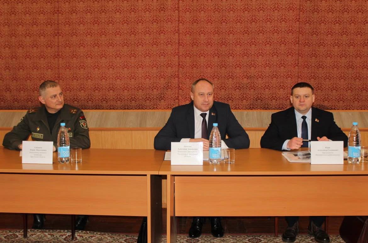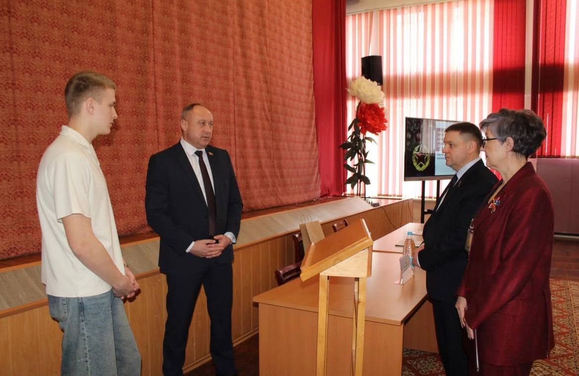 19.02.2026 в единый день информирования, тема которого «Оборонительная мощь белорусской армии и патриотизм в современных условиях» в колледже с коллективом обучащихся и педагогов встретились помощник Президента, инспектор по Брестской области Александр Ломский, заместитель военного комиссариата Брестской области Юрий Самошук, председатель Малоритского райисполкома Александр Корж.