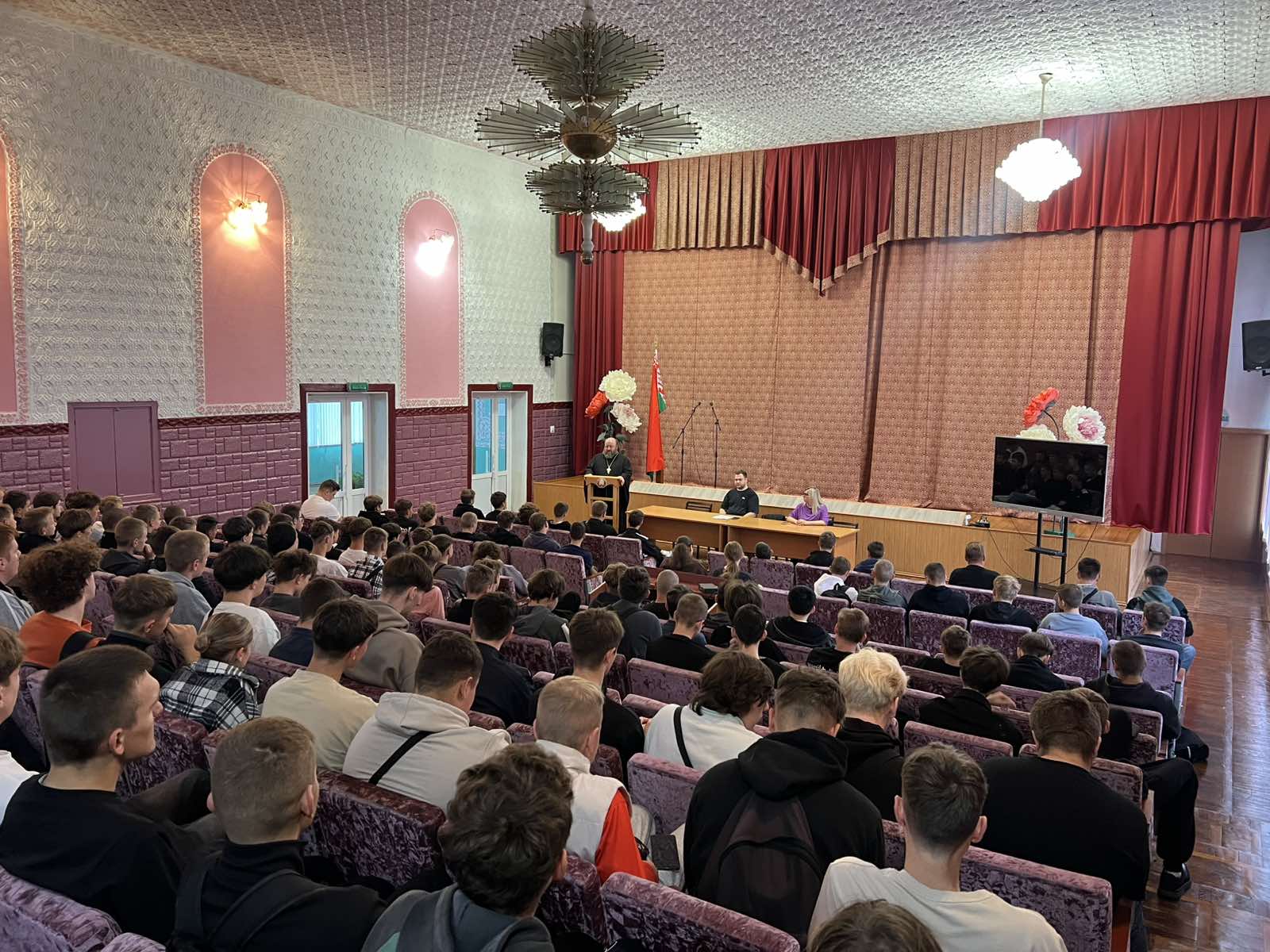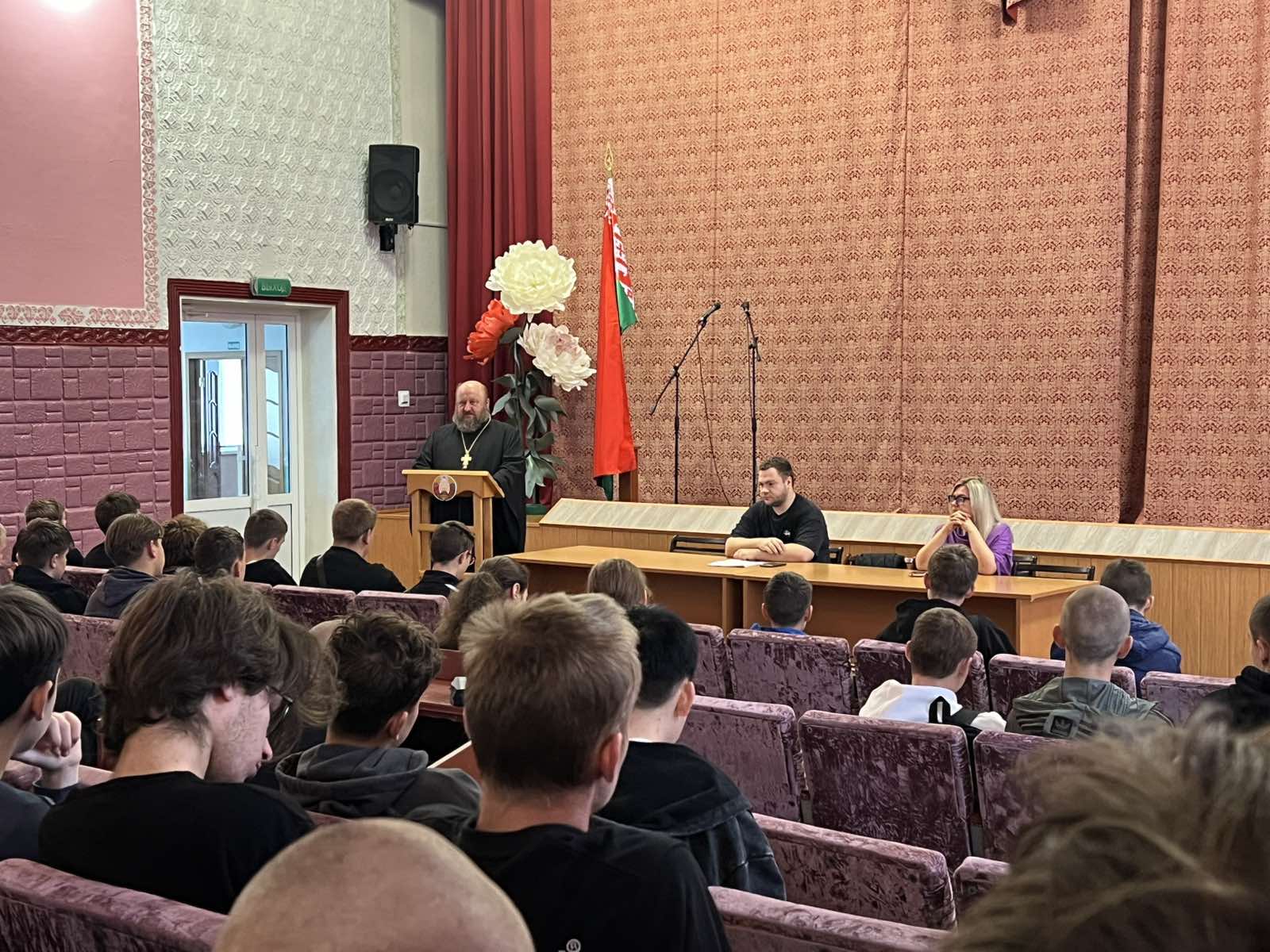 В актовом зале колледжа состоялась встреча обучающихся с врачом-наркологом Котелем Евгением Юрьевичем и протоиереем Виктором Полетило, настоятелем храма святителя Николая Чудотворца. Целью мероприятия стала профилактика алкоголизма среди молодежи.